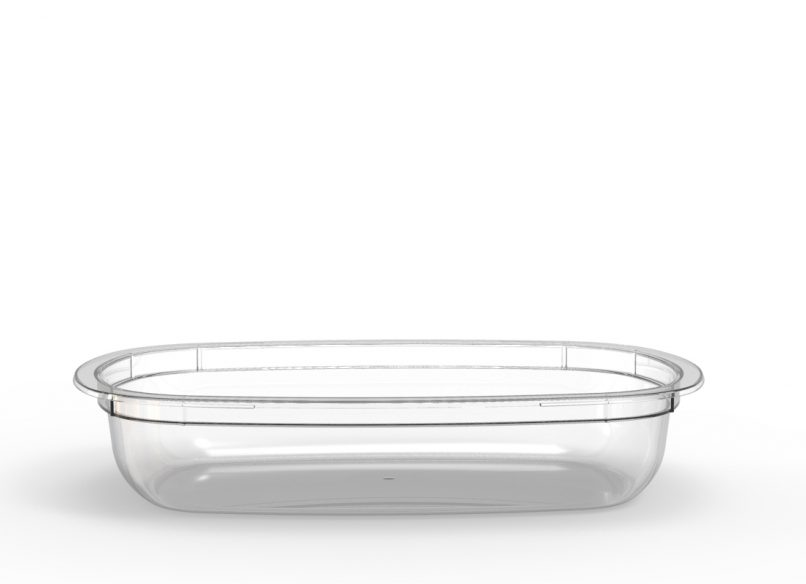 This 600 ml tray features a gourmet design for the ready-made meals section. It is available in 700 ml, 900 ml and 1200 ml sizes.